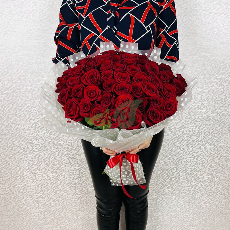 Букет из красных роз "Ред Наоми" - 60 см
