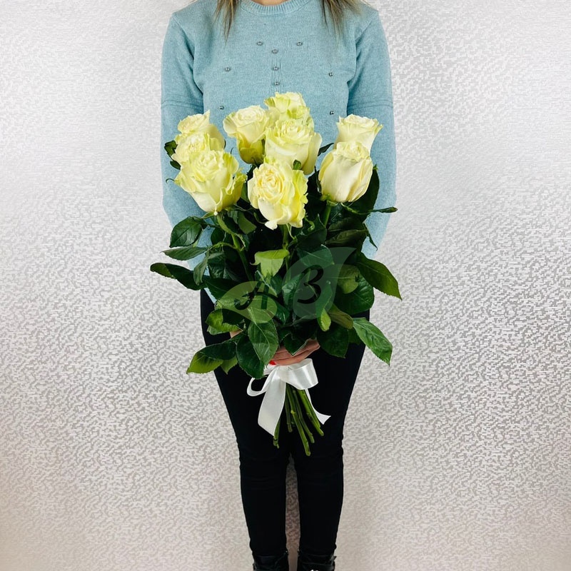 Букет из белых роз "Мондиаль" - 70 см