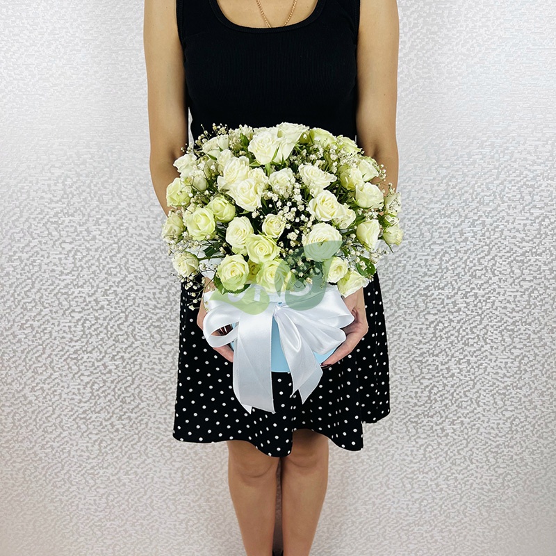 "Кустовая роза белая в коробке"