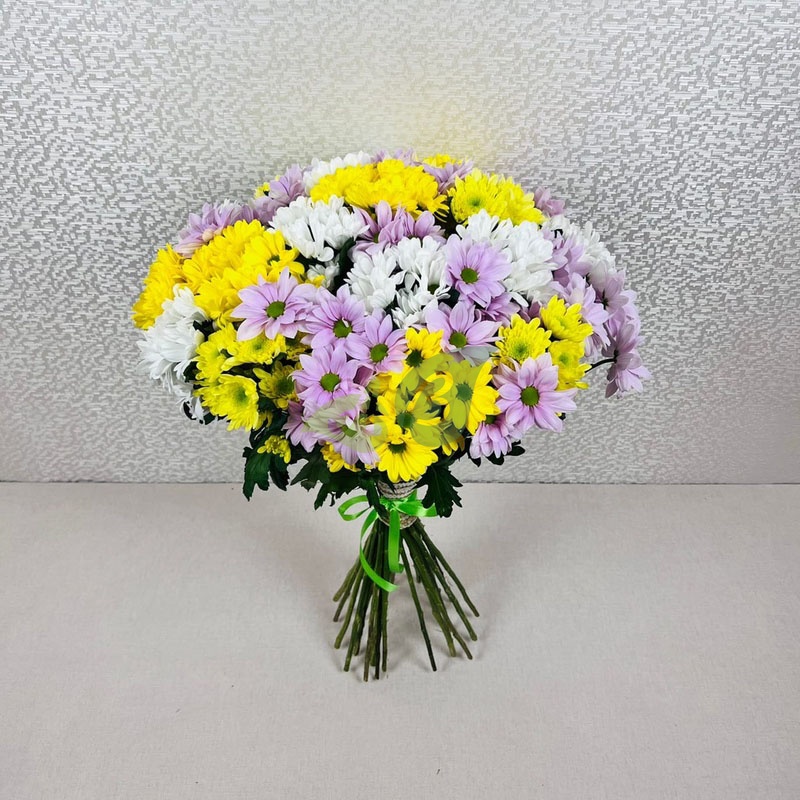 Закажите большой букет из сиреневых, белых, желтых и розовых хризантем и доставка по Котельниково будет бесплатной.