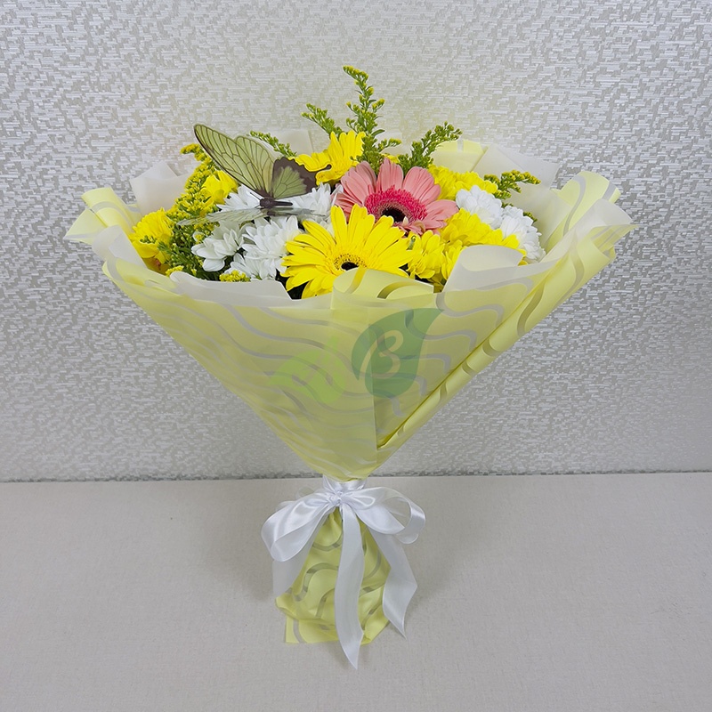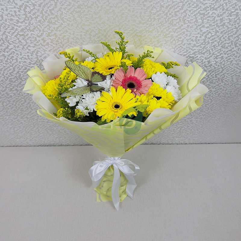 Букет кустовых хризантем и гербер Крылья бабочки